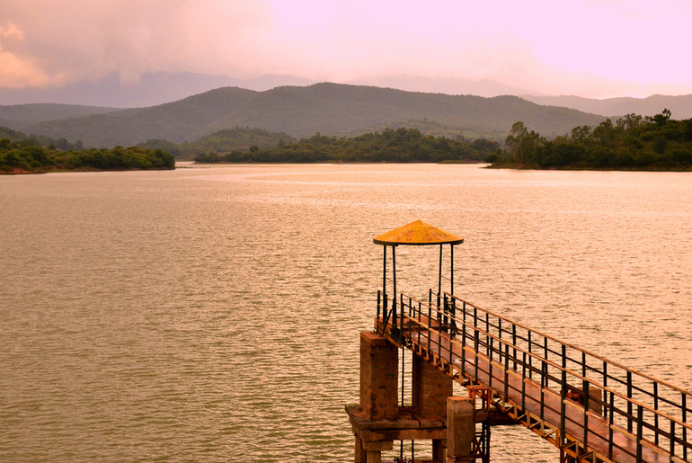 Bhadra Dam is built across the Bhadra River near Lakkavalli in Chikkamagaluru district. It is mainly used for irrigation and hydroelectric power generation. The reservoir is surrounded by beautiful forests and hills of the Western Ghats. It is a popular spot for sightseeing and photography.