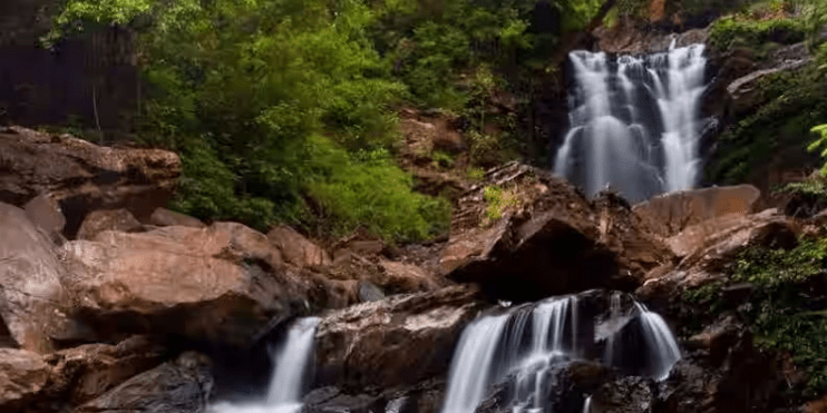 It is a beautiful waterfall hidden in dense forests.