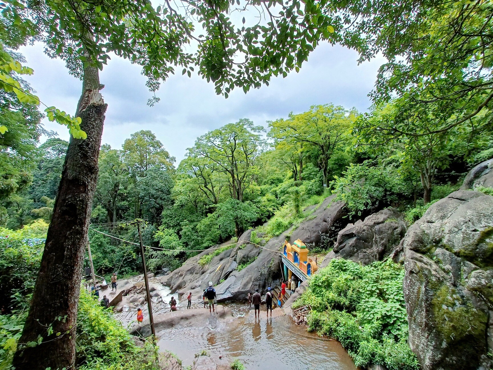 Kalhatti falls is a scenic waterfall with a nearby temple.